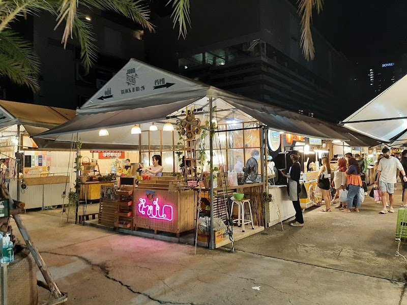 Popular night market with food stalls and live music.